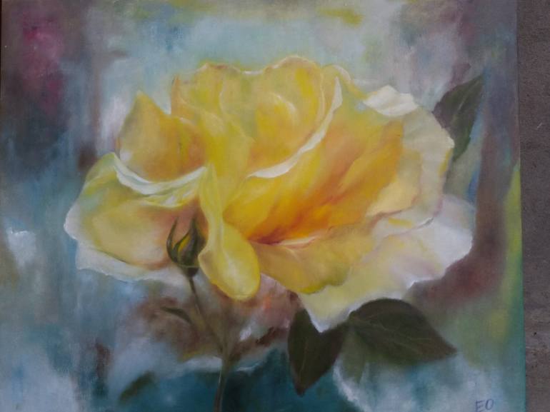 Yellow rose like a light in the approaching twilight.The picture is painted in oil on canvas with high quality paints in 2020