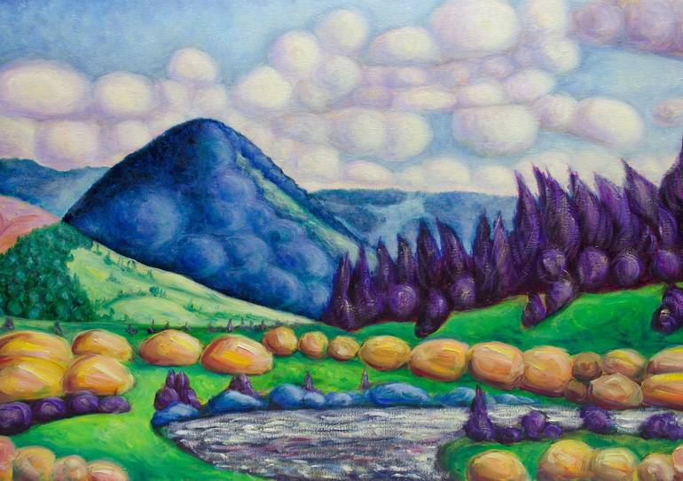This painting belongs to the series of paintings called "Natural beauties of the USA". I shaped this landscape in my own personal style for research purposes. Landscape in this painting are real and is located in the National Park. But during the process of making the painting, the name of the Park ...