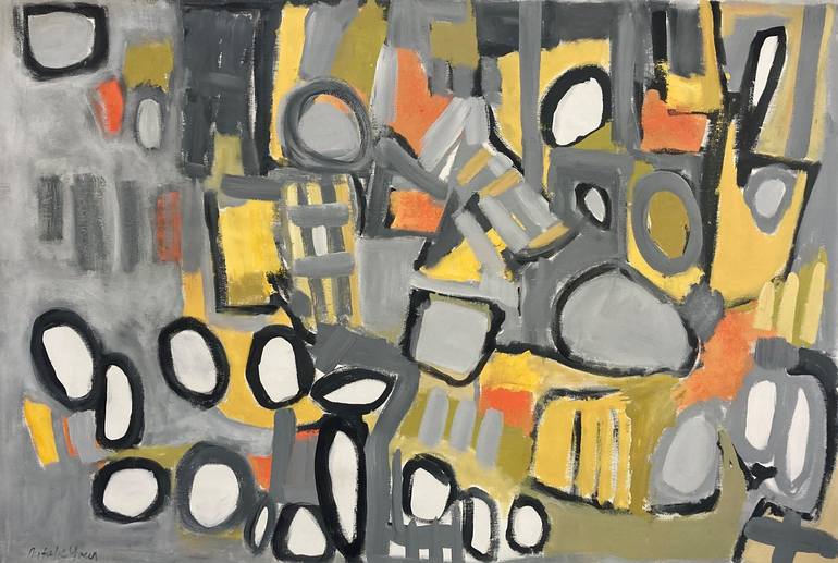 Yippee is a happy artwork, with lots of places for your eye to travel; This artwork is delivered rolled in a tube. The canvas is l82 x 130 cm to allow for stretching and framing. The artwork will be l62cm x 110cm as it appears in the insitu photos The painting is finished with 2 coats of art var...