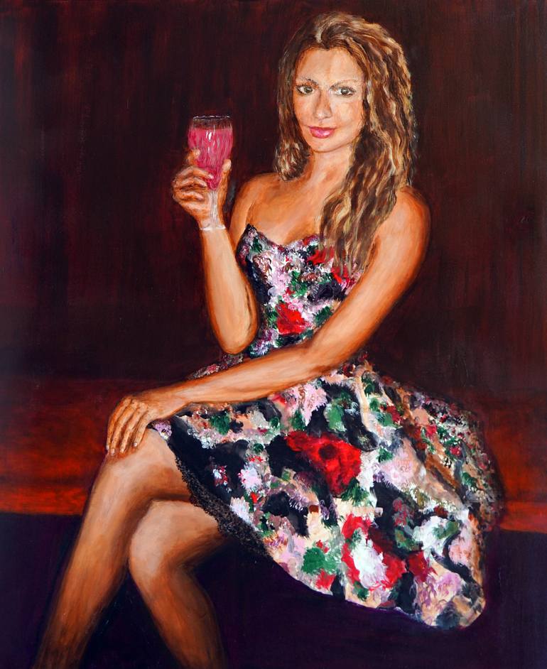 Painting; Acrylic on Linen Canvas, 2015 A portrait of my daughter A young Beautiful Woman in a special nice dress, in a romantic place. She looks like a quieen!
