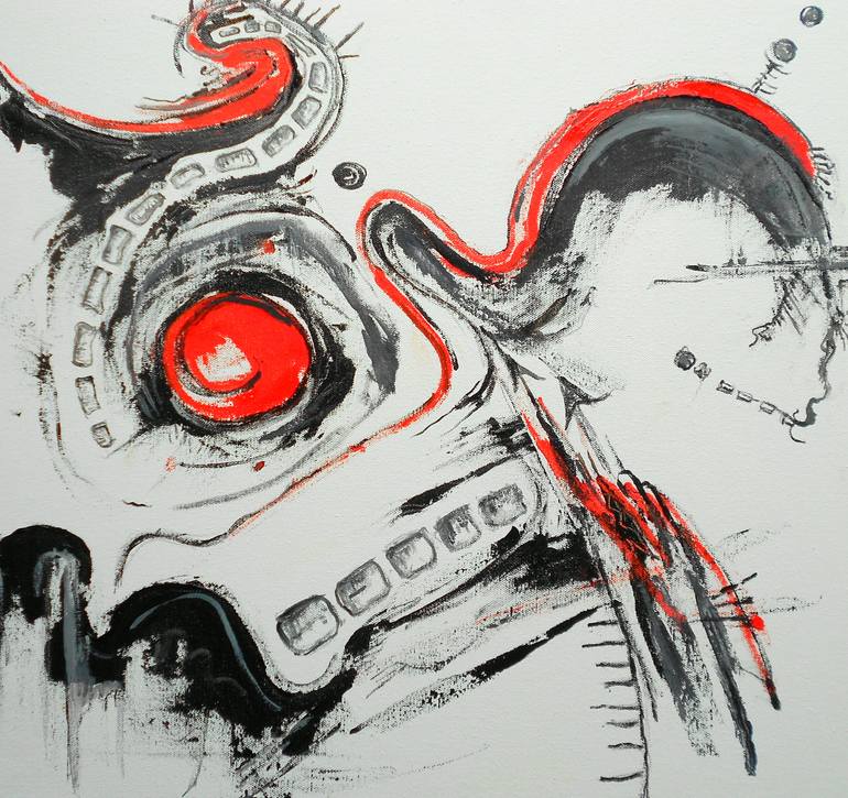 This work is an abstract expressionist oil painting surreal eluding to needing some guts in life sometimes life gets hard and we need to dig deep within us and "Get a little backbone"