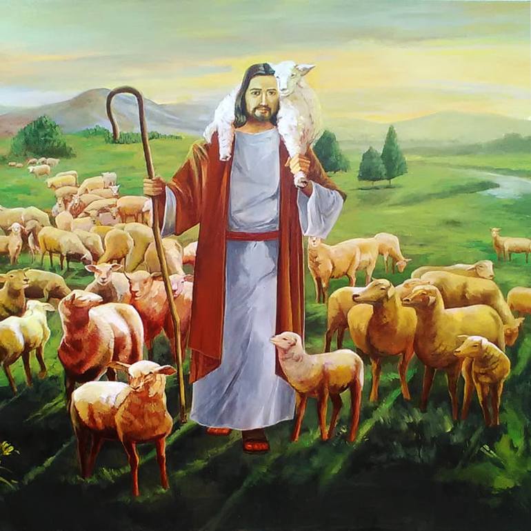 In this painting, the artist shows his devotion and trust for the lord. The message he conveys is just simple. That is; Trust the Lord. He is the Good Shepherd. He knows His sheep, and His sheep know his voice; and today the voice of the Good Shepherd is your voice and mine. It is an inspiring piec...