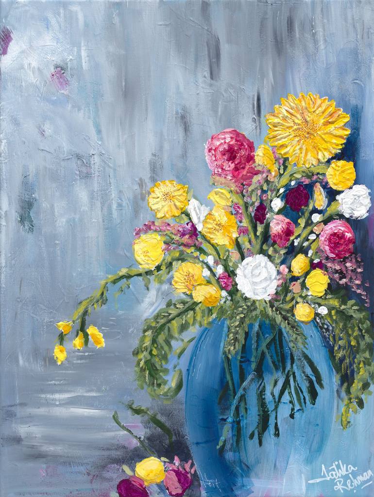 Winter cold rainy days inspired this warm sunny yellow abstract floral art. I was missing summer and thought to create warmth.