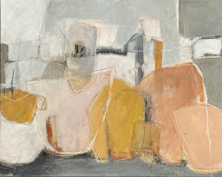 The title "You're on earth. There's no cure for that." refers to a quotation by Samuel Beckett. This abstract landsape conveys lightness and ease as well a a resolving beyond the boundaries of the work. As a result there is a suspension not seen at first sight when the soft and warm earthy colors p...
