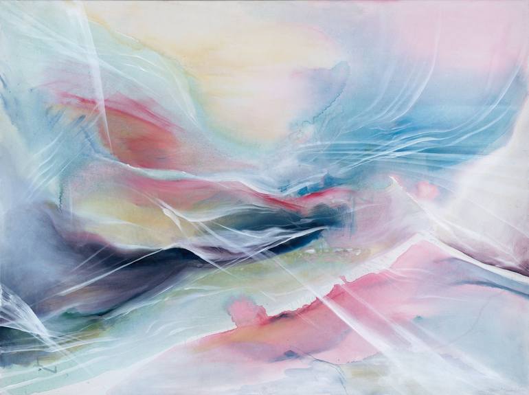 I love connecting with others about art. I like to hear other people's stories and perspectives. Don't be shy to connect with me on my social sites, where you can see in-progress work, videos about the process and my studio, and writing. As an artist, the process of creating is a tool for me for self-understanding and expression. I go to paint without an idea of what I'm going to do, but rather with trust that I'm going to learn about myself in the process of starting, developing, and completing a painting. I make paintings that I love and that I need in my life. My thoughts, emotions, recent visual inspiration from living, conscious application of techniques and sub-conscious revelations of a deeper part of me all come together, every time, in the process and in the final image. The process of creating encodes the memory for me. Any piece of mine, I can recall where I was, what was going on in my life, and often even details of what I was listening to. Creating is a memory machine for me. The other half of creating takes place away from the canvas, in the act of living. I am always intently looking, trying to understand. What is it that is making the sunset so special, just why does this flower capture me? Is there a universal visual language? I am looking for that connection and know I am getting somewhere when someone viewing the work relates a story from their life to me, unprompted, that relates to the theme I was working through in the work. Georgia O'Keefe has been a lifelong influence. I first recall stashing a library book of her flowers under my bed as an elementary school student, fearing that the sensuality of the images would somehow get me in trouble. Helen Frankenthaler is another artist I am drawn to. If you read more in my biography, you may see some parallels in our lives and why she is an inspiration to me. Many of the Saatchi abstract artists that presented in the 2021 Sydney Virtual Fair inspired and influenced my subsequent 2021 painting collection, most notably Dinah Wakefield. My philosophy on art is largely attributable to Alain de Botton's book, Art as Therapy. He shifts the focus on art's importance from an intellectual act of knowing dates and trivia to speaking humanly about how art serves our needs to capture memory, have hope, be comforted in our sorrow, create balance in our lives, understand ourselves, express ourselves, foster appreciation in our daily living, and to grow.