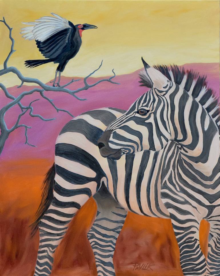 Zebras are such striking subject matter that it's hard to avoid painting them, especially as a wildlife artist. The bird is a southern ground hornbill which is listed as endangered in most African countries. Certain zebra species are also endangered. The IUCN lists the Grévy's zebra as endangered, t...
