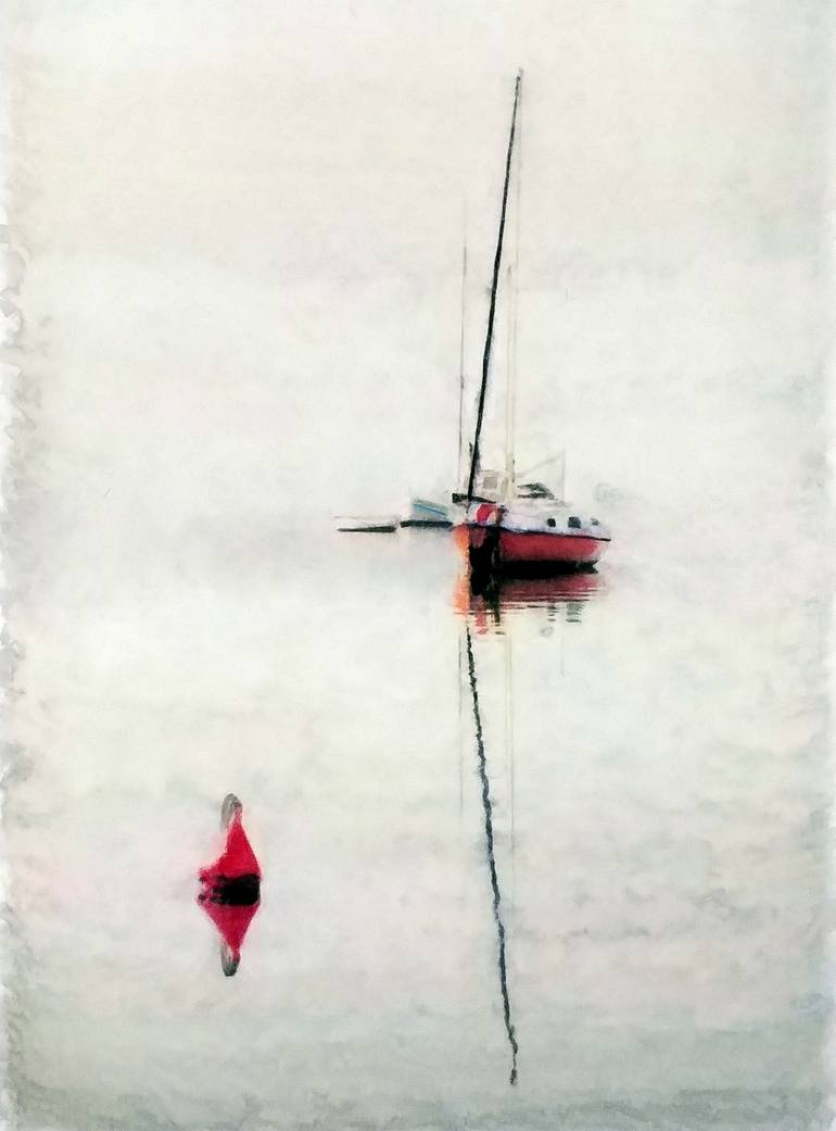 Zeccino Boats on calm sea covered by morning-mist. Steinhuder Meer, 2019 Acrylic paint used in watercolor-technique. acrylic on paper dimensions 40cm x 30cm signed & dated