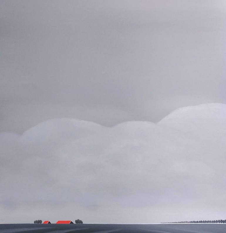 A grey cloudy sky above my polder in Zeeland The land is waiting for winter, the clay has been ploughed. "Amazing how one tiny splash of red makes the whole sky more intense. Your low horizon lines are so dramatic and so very Dutch". (D.H.) "You do great Tranguility Nelly, better than yoga to hav...