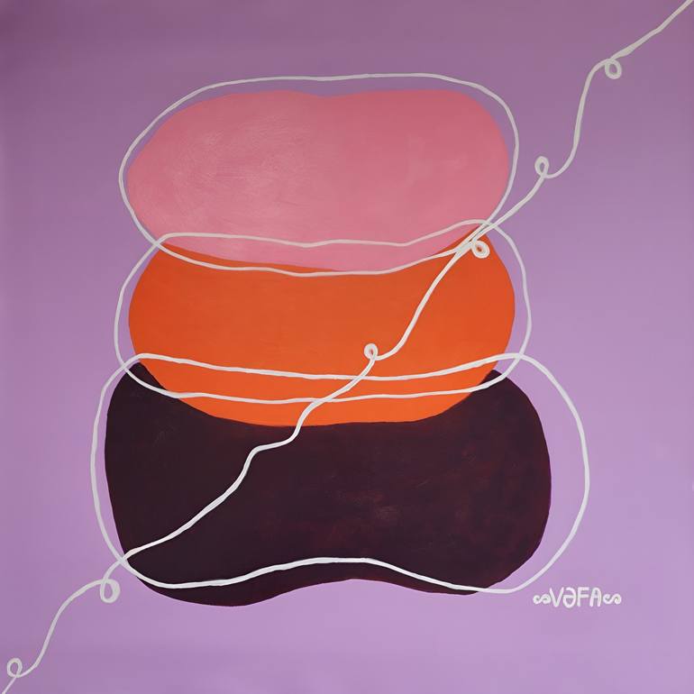 Discover the profound harmony of spiritual symbolism and minimalist design with my original painting, "Zen Minimalism. Calm Lilac." This serene artwork features a vertical stack of deep dark purple, orange, and pink stones, arranged with a natural, organic asymmetry atop a soft pastel lavender backg...