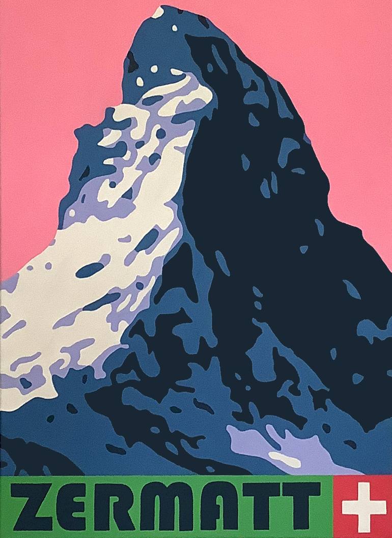 This painting is part of a group of Zermatt/Matterhorn artworks, all similar but different in certain aspects. As is my usual practice it is developed from a photographic initial source and hand painted in acrylics on canvas by the careful application of many layers of paint in order to arrive a ver...