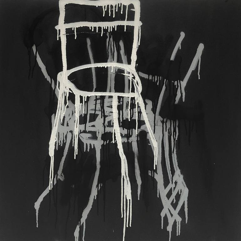 This painting from my "chairs" series, is a powerful metaphor and symbolizes misuse of power with impunity, something I'm sure we are all aware of in our world. It was painted directly and spontaneously with little reference. Influenced by work by Philip Guston, Tracy Emin and Cy Twombly but to na...