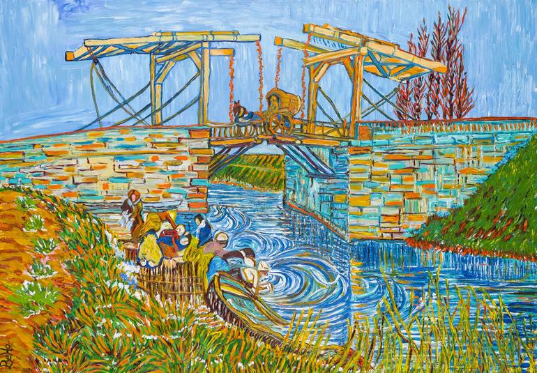 Vincent van Gogh is my inspiration and I love to paint his works with so strong colors...I could not stop painting till the painting is fullfilled... The Painting has a silver painted frame and could be hang immediately. On the backside are the No. of my work (110), my signature and the beginning da...
