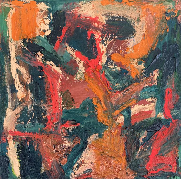 6” X 6” acrylic, gouache & oil on canvas painting. One of a series of small abstracts. The mixes media gives the piece a unique texture. The colors are bright, bold & rich. It is signed on the back and ready to hang without a frame.