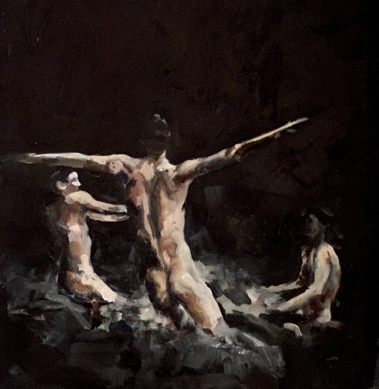 The story is that of a midnight bath. A group of people dive into a dark lake: perhaps playing, perhaps screaming for help. It is not possible to know what will happen at daybreak. The painting represents the suspension of all things in night and darkness. The next moment we may be invaded by fear o...