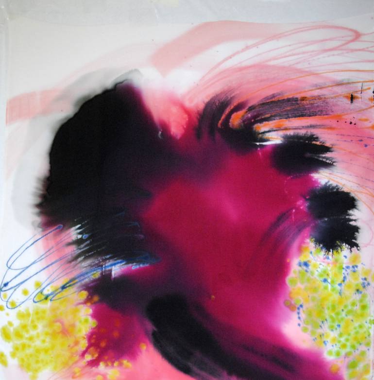 Bang is an experimental silk painting. I have used intense color dyes that I have spilled on white surface of the silk stretchened on the table. This energetic experimental textile art composition shows explosion of mixing energies. I have made this central composition from intense colors of rose ...
