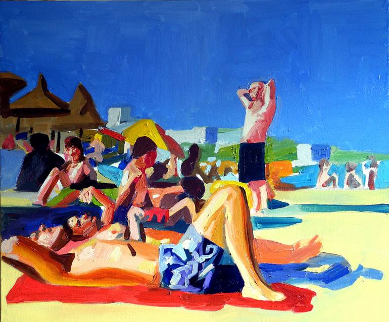 people on the beach... I am drawn to depictions of leisure as beach or pool is a place where people are partly naked yet unaware and in a 'natural' setting so in some way this subject matter is timeless. I am drawn on the other hand to a nostalgic pleasure and it is difficult for me to separate the ...