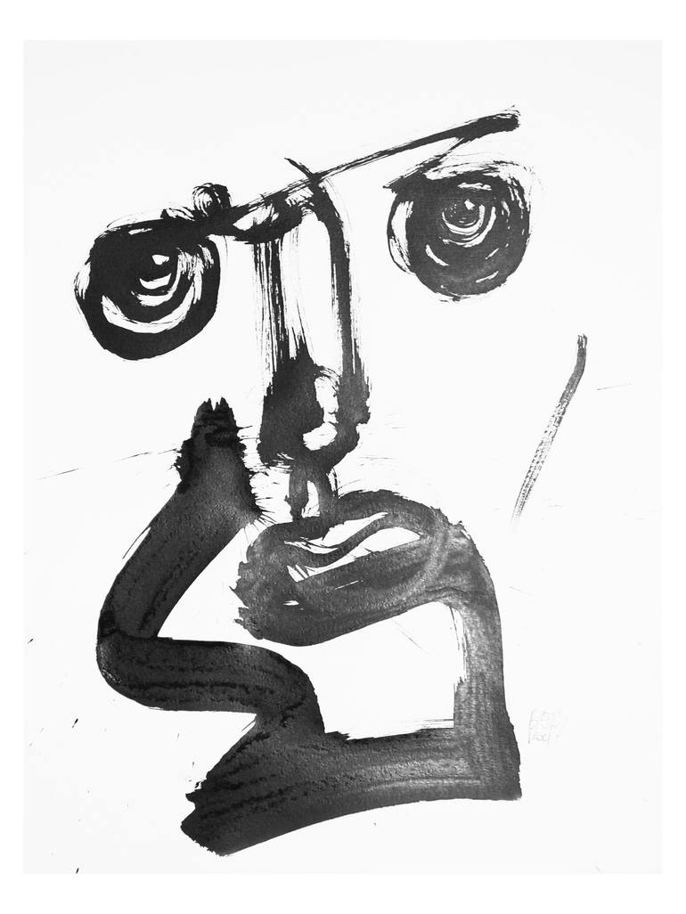 More information on Born in 1972 in Belgium, I extend my sincere appreciation for taking a moment to explore my artistic endeavors. To me, my art is a symphony of speed, precision, creation, human connection, and an enduring passion for drawing. My process is an unfiltered journey, a "shot from the hip," where spontaneity meets intention. After an extensive search for the perfect medium, I discovered the expressive power of Chinese Ink, and my exploration came to a halt. Immersed in this medium, I dip my brush into the ink, allowing myself to relax and create a face with the barest essential lines. This process is adaptable to any size paper or canvas, employing an array of brushes of different sizes. The focal point of my work is the eyes, as they breathe life into the art. Once the ink has dried, I often infuse vibrant color accents using gouache paint. My artistic style seamlessly blends elements of action painting, figurative painting, and the free-spirited essence of doodling. Can this be doodleisme ? ...