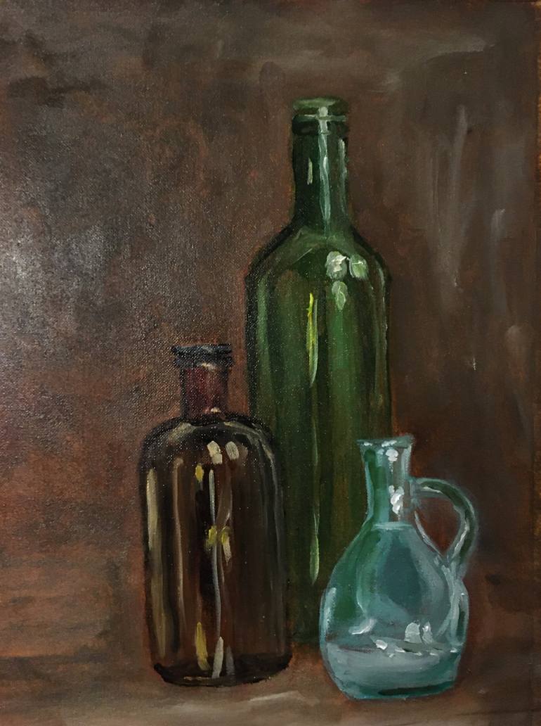 Oil painting on special oil paper. Study of painting transparent glass objects.