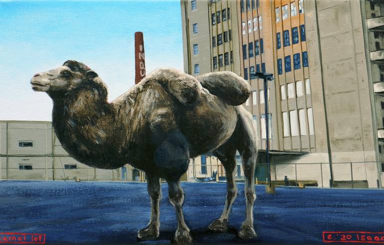 From a series of small-scale oil paintings pairing animals with suggestive settings. The combinations evoke mysterious and thought-provoking atmospheres.