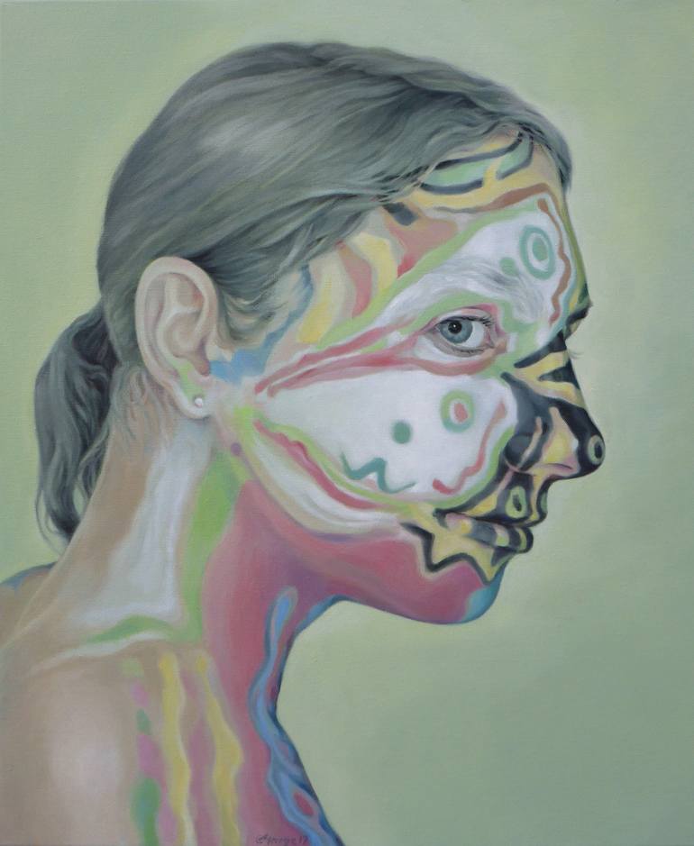 Born in 1957 in Borken/Westfalen, Germany, Marga grew up in a pretty bourgeois family. She made her way against her parents expectations. She finished university with a higher degree in fine arts. She devoured books from Hermann Hesse, idolized Buddhism, lived in grief for a better world and was disappointed by the lack of creativity in the art lessons at school. Drawing for her has always been a way for retreat while gathering energy to manage conflicts. During a period of social service for the community she found entry in art classes at the University of Kassel. Again, disappointment arose from the rigid way of thinking by the professors. "The best teaching I got from my senior mates", Marga reflectes about her early studies. The heart of her work has always been the oil painting. Marga Golz` early work is closely associated to the magic realism. Achieving the final color through multiple coats of paints according to the old masters is a technique she still applies today. Her paintings on the switch of contemporary issues over times cover the periods from renaissance to modern computerized art. Figures of men and women pregnant with meaning and carefully dissected. Taking her subjects into geometric and multi-faced pieces Marga has devoted herself to the cubism. The compositions of her paintings are frequently based upon real objects, dreams or derived from personal experiences or visions. Sensuality and effectiveness are the drivers for creating scenes of human encounter which should translate into a story or fairy tale. During the process of painting the focus on the final work gets constantly challenged and broken by covering colors with different layers of pigment, changing forms and shapes or moving and mixing of borders and structures. This ends up in specific and unique dynamics and rhythm in each piece of work. Every new object is going through a cycle of spontaneity, simultaneity, manifoldness and poetry of life. This is how Marga makes us aware the uniformity and exchangeability of the world around us.