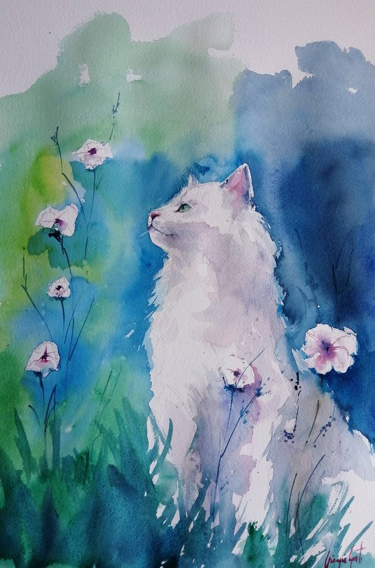 portrait of a cute cat This artwork is done on 300 g Fabriano Artistico watercolor paper with Winsor&Newton colors. Signed on the front, the Certificate of Authenticity is included. Please don't hesitate to get in touch with me if you have any questions