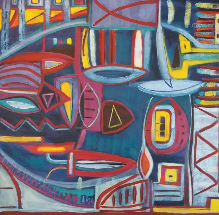 With this painting, I purposely set out to do something "different," so instead of beginning with broad sweeps and curves, I began with more geometric shapes in colors that were not typical. It went through many changes until it got to something that I found both pleasing and interesting. This wo...
