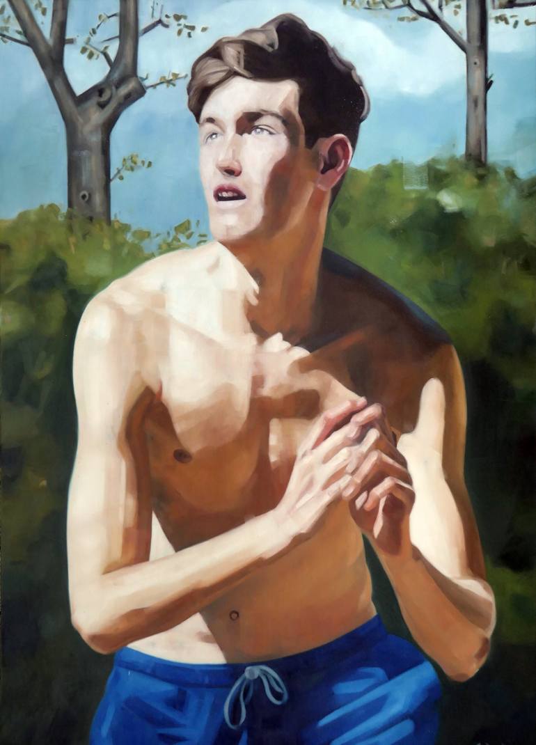 I´m influenced by different styles espescially by symbolism. The scene is loaded with meaning by the strict composition and reduction. I also love to paint skin colours especially the quality that you can only see outdoor