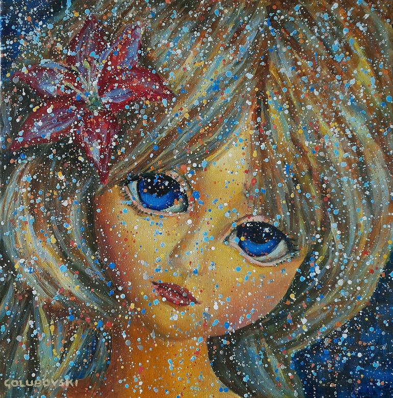 Dive into the captivating depths of "cosmic portrait," an original acrylic painting on canvas that seamlessly blends abstract, contemporary, and surreal styles. This striking piece features a mesmerizing portrait, drawing the viewer in with its intense blue eyes that seem to hold the secrets of the ...