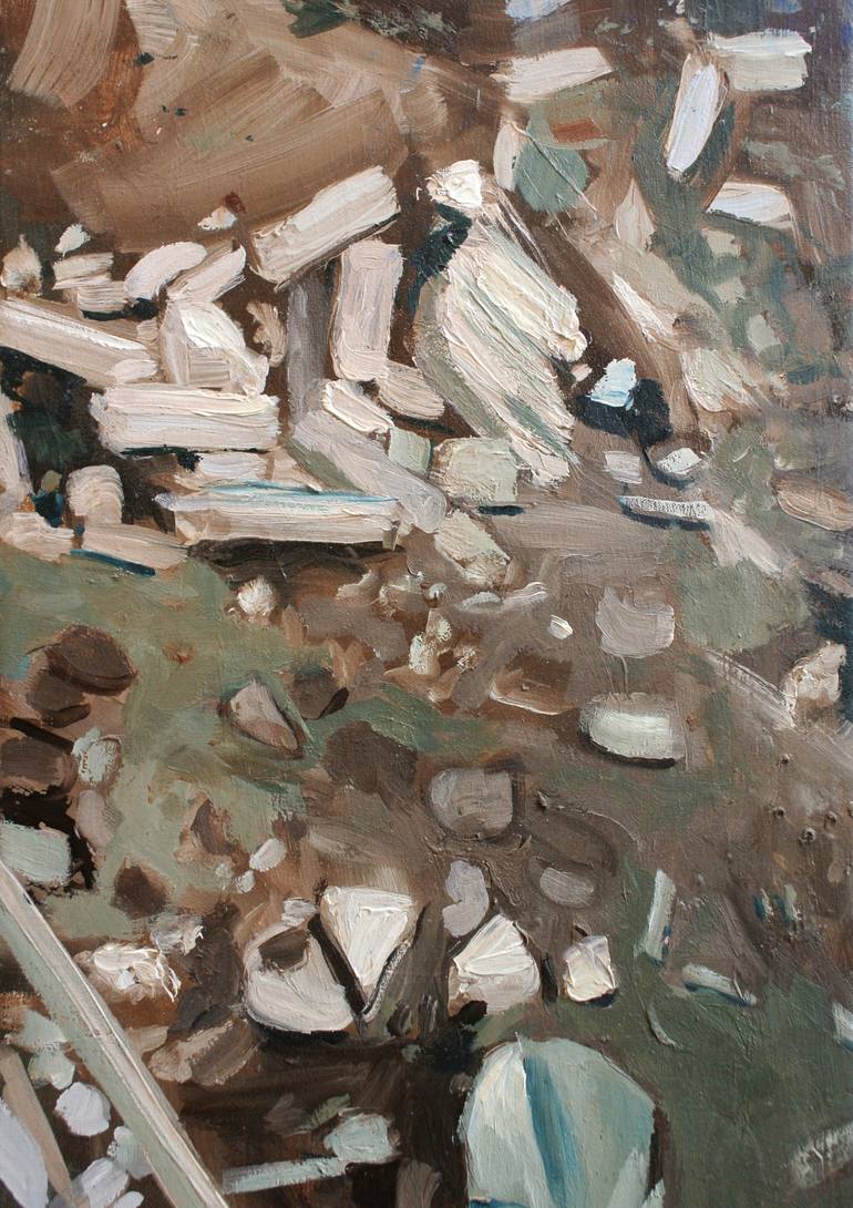 This is one of the first debris paintings i made. It depicts debris that come from the houses that were demolished in my backyard. The demolishing would start every morning at 7 o'clock for a few months. The debris looked like nature to me but than created by man. And like nature it was constant cha...