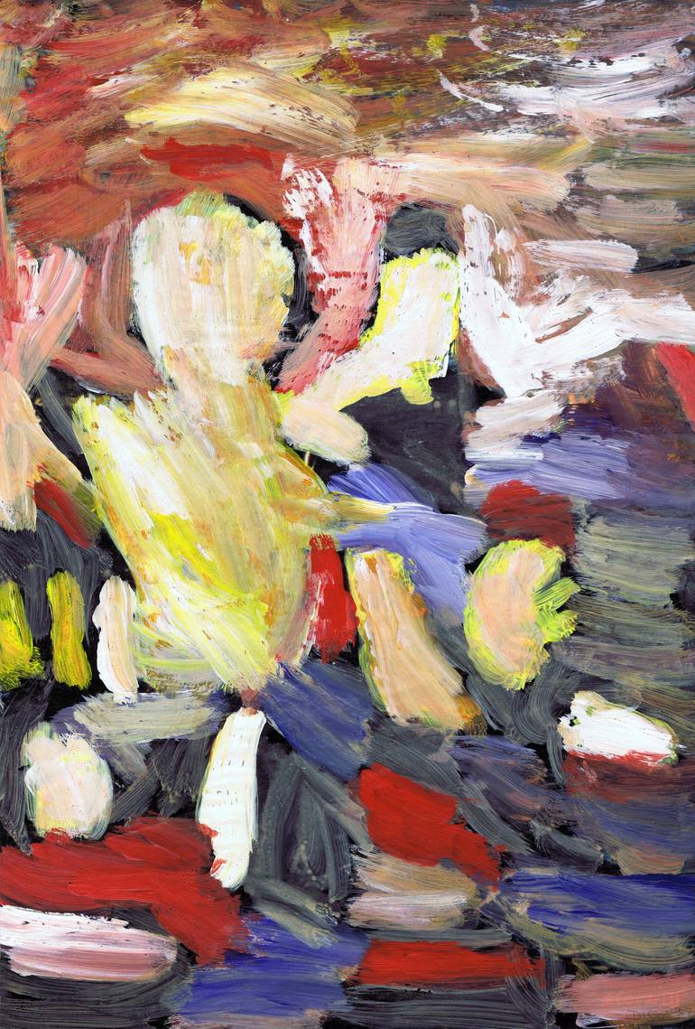 color composition, overpainted magazine page, creative destruction of a photographic original