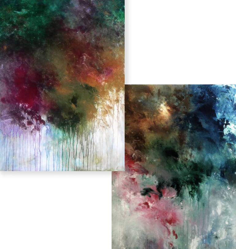 two 30x40" abstracts The paintings that I create are meant to inspire and uplift, as well as enhance your interiors. I believe that our homes should be sanctuaries that surrounds us with comfort, color, beauty and the things we love. If you feel an emotional connection to a work, or you just LOVE t...