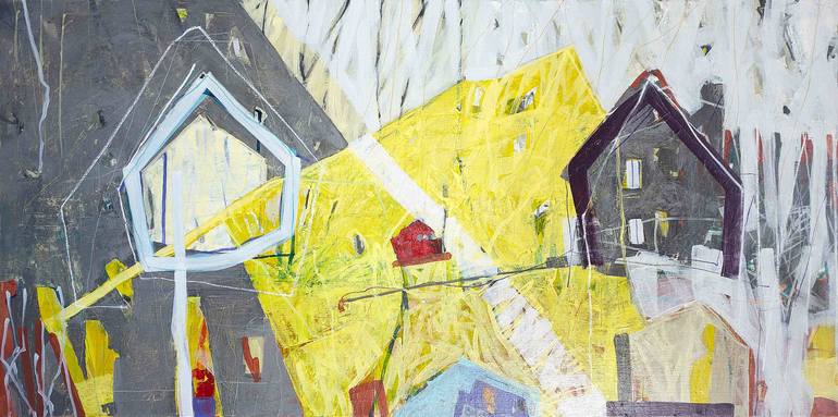 Peinture sur toile regard sur les maisons abstrait, composition