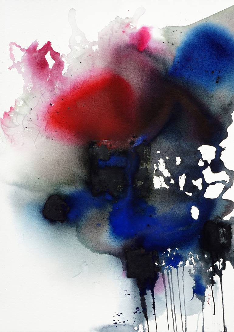 This is large abstract watercolor painting 29.5x41in (~75x104cm) done with watercolor paints and water on high-quality Arches paper (640gsm / 300 lb). I call it Dragons of My Dreams.