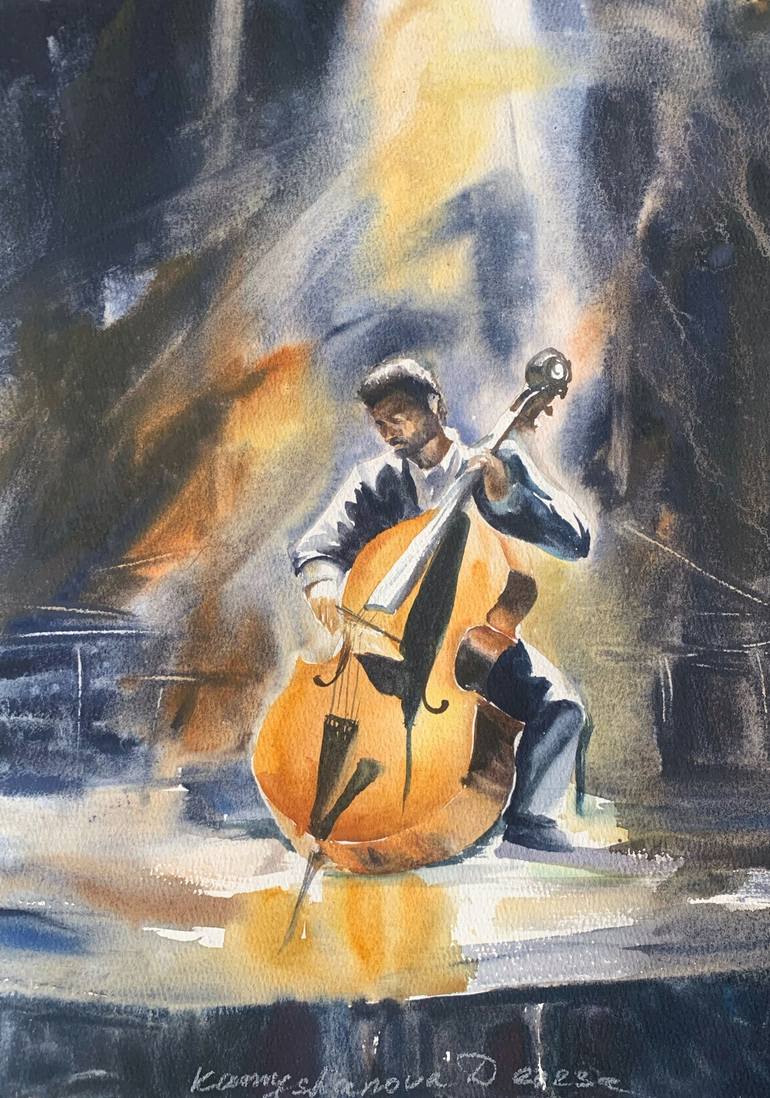 This painting, titled 'Cellist. House,' is part of a series that highlights musicians on stage. It draws inspiration from the profound impact of music on emotions, the unique atmosphere of concerts, and the distinctive lighting. Through the use of color, I aimed to capture the ambiance and the reson...