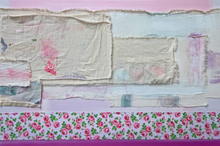 24" x 36" x 1.5" deep edge gallery wrapped canvas Textured Collage Painting Acrylic, Watercolour and Vintage Fabric on Canvas The artwork is signed on the side and the back. It is wired and ready to hang. creating art by breathing abstraction into emotion pursuing confusion haziness obscurity m...