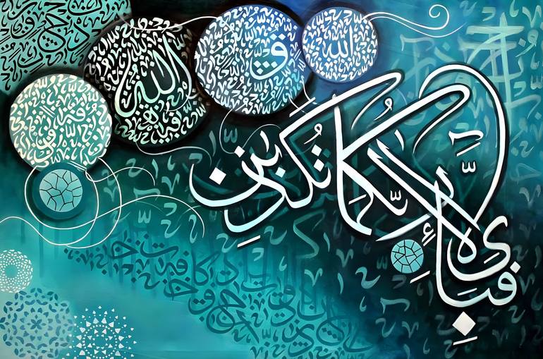 My 2nd 3D Modern Calligraphy Painting😌 فَبِأَيِّ آلَاءِ رَبِّكُمَا تُكَذِّبَانِ “Then, which of the favours of your Lord will you deny?” ( Surah Rehman ) Techniques Used •| Circulism shading •| Back writing for detailing •| Abstract Sulus Alphabets (Hurf e Tahaji) for giving modern touch •| Thin...