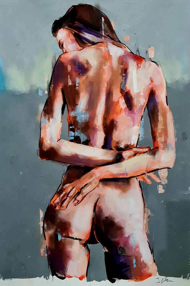 female back 9-5-22 is a medium scale female figure in inks, watercolours, Acrylic and soft pastels on 200gms paper. The use of fluid mediums such as inks, watercolours and acrylics allows for a certain element of chance within the drawing and are produced quickly using expressive marks and stains, ...