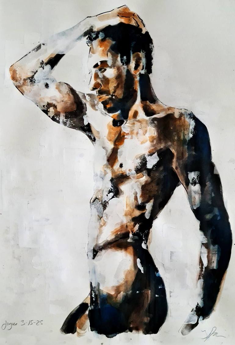 figure 3-15-25 is a medium-scale male figure in inks and soft pastels on 200gms paper. The use of fluid mediums such as inks, watercolors and acrylics allows for a certain element of chance within the drawing and are produced quickly using expressive marks and stains, giving them an ‘imperfect’ or ...