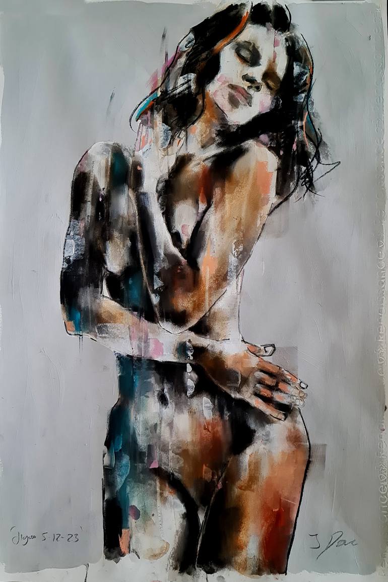 figure 5-12-23 is a medium scale female figure in inks, watercolours, Acrylic and soft pastels on 200gms paper. The use of fluid mediums such as inks, watercolours and acrylics allows for a certain element of chance within the drawing and are produced quickly using expressive marks and stains, givi...