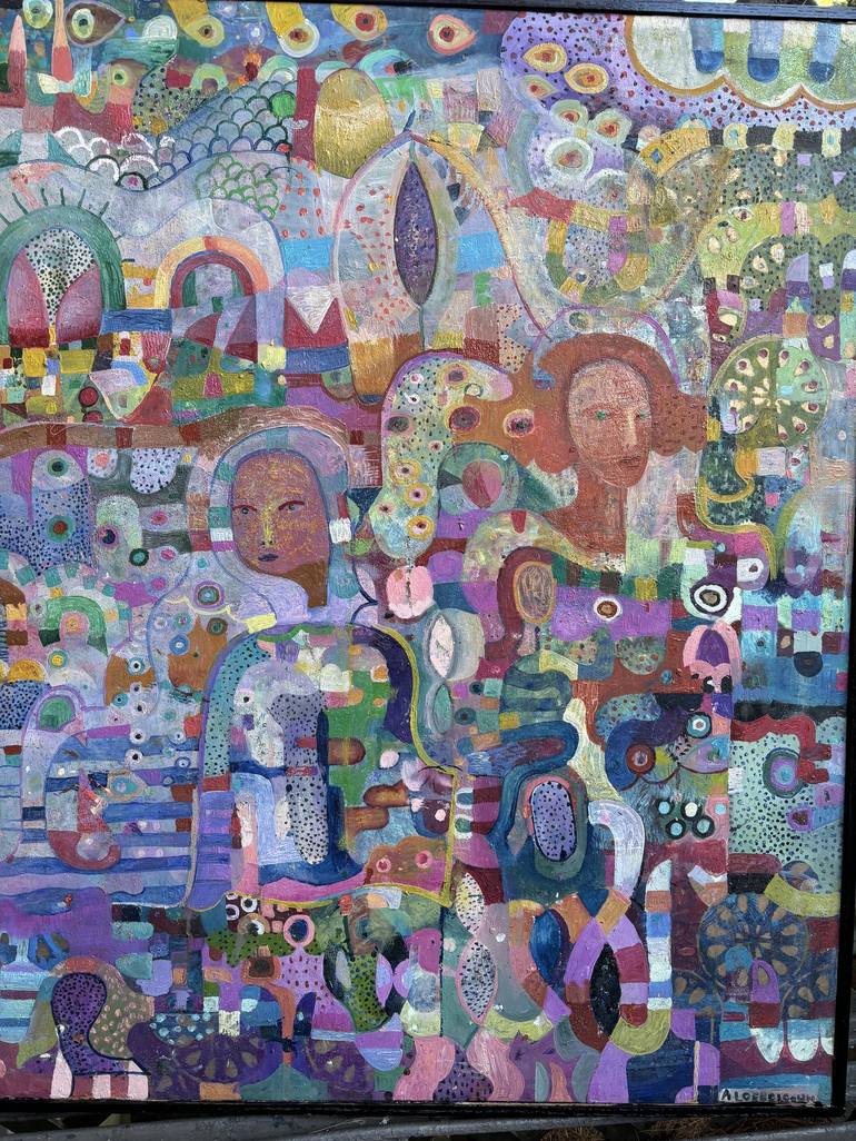 I feel that each painting should tell a story. There are images of figures and places to be. the figure interacts in their environment and the viewer can put in the story. There are many layers and materials . the piece changes as you move around it. I wish to give joy and happiness in this piece an...