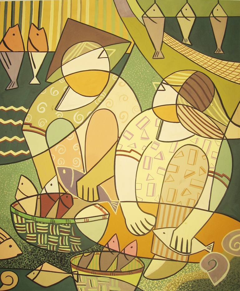 fish market painting by me size 100x82cm Wish you always happy in your house, contact me whenever you want and to get the best price. Please carefully check the size and color of the painting before buying it. The actual color of the picture, may be slightly different from the image displayed on th...