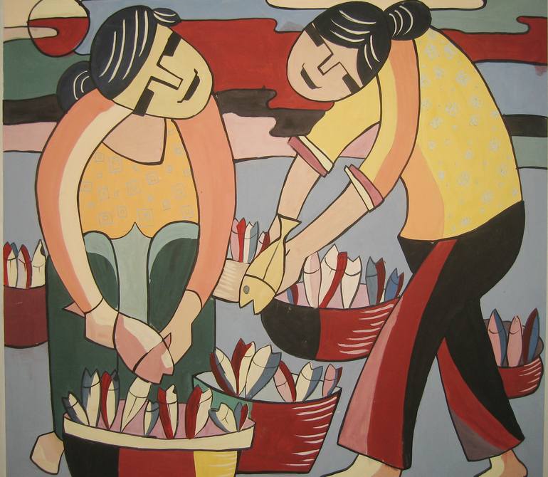 fish market painting by me size 100x87cm Wish you always happy in your house, contact me whenever you want and to get the best price. Please carefully check the size and color of the painting before buying it. The actual color of the picture, may be slightly different from the image displayed on t...