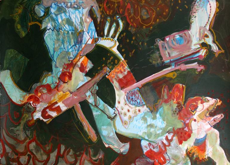 My art explores the intricate interplay between personal memories and nostalgia, capturing the essence of cherished moments while examining the contrast between our inner emotional landscapes and the external realities we navigate. Drawing inspiration from the fluid, dance-like movements of the 'Cobra' artistic movement, I have sought to incorporate elements of both traditions into my work. Gradually, I merged the composition of symbolic elements with free-flowing gestures and movements, creating a dynamic interplay within my paintings. This fusion has added a new layer of complexity to my art, forming a rhizomatic structure that continually evolves. While my pieces still feature familiar symbolic motifs—such as children's toys, merry-go-rounds, and animals—they are immersed in a whirlwind of lines and colors, imbuing them with vitality and energy. This free-floating composition serves as a bridge between the historical context of painting and contemporary expression. Within my canvases, figures and visual elements drawn from my childhood, imagination, and cultural heritage engage in dialogue with the very materiality of painting itself. Spaces teem with life as figures dance across the surface, yet blank areas speak volumes, representing moments of silence or absence. I empower my figures to soar in every sense of the word, adorning them with wings while allowing them to float amidst the dynamic composition that animates my canvases. Architectural forms intertwine with figures, blurring the lines between interior and exterior spaces, infusing them with both rigidity and irregularity. Yet, amidst the swift strokes and vibrant hues, a palpable sensuality emerges, evoking themes of childhood, eros, and mortality—an ode to the power of color and emotion. Through my art, I invite viewers to embark on a journey of introspection and discovery, where narratives unfold and emotions resonate with each brushstroke—a testament to the enduring vitality of the human spirit. Elham Etemadi holds a Ph.D. in Visual Arts in France. She began her academic journey with an undergraduate degree in painting from the University of Art. She further pursued two Master of Arts degrees in Fine Art: the first awarded by the University of Art in 2008 and the second by the University of Strasbourg in 2011. Since 2005, Elham has actively participated in numerous solo and group exhibitions across Europe, America, and Asia.
