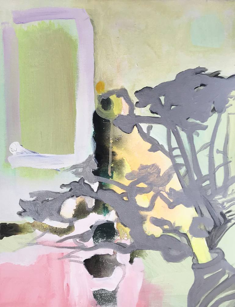 this painting is part of a series of works done on canvas, exploring on the shade that flowers made on the white wall of my workshop. i love the distortion of the shapes, and the subtle gradations of grey, in tension with the burst of the colour of the flowers using both natural light, and playing w...