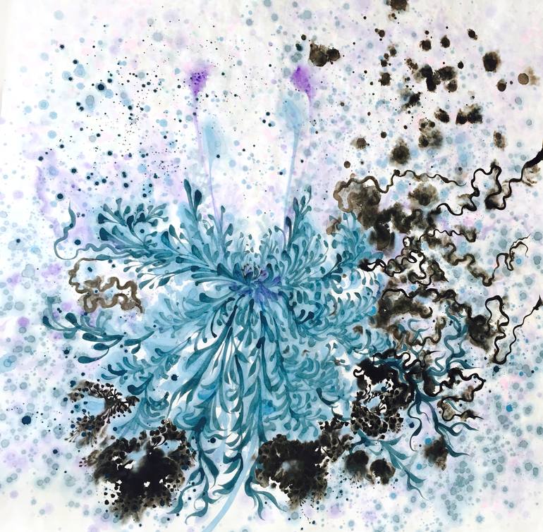 花03_纸本設色_120x120cm_2016_潘柬芝 Blossom03_InkOnPaper_120x120cm_2016_PoonKanChi Will be Framed in raw, wood box frame.