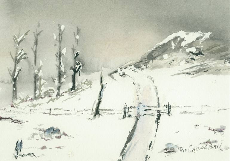 This painting and matte can be put into a frame to display. I’ve matched the colour of the matte to suit this painting. The matte is handmade and prepared by Doreen (my neighbour). This painting captures a tranquil winter landscape, a serene atmosphere.