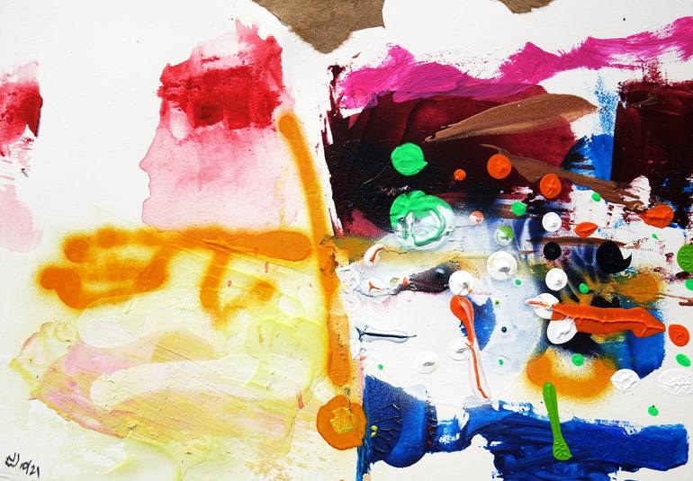 abstraction, experimental landscape/mindscape © ww 2021 | half & so | acrylics, spray paint, acrylic gel, collage on Arches Aquarelle | 18 x 26 cm | 10/2021