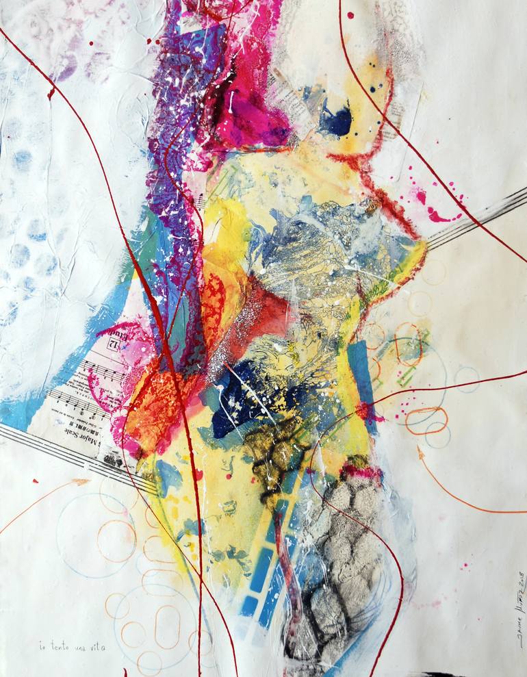 Born in Barcelona in 1977. Poet and painter. In my work I explore the expressive possibilities of both abstract painting and figuration, settling on the crossroads of chaos and order. My working process is based on free abstract improvisation (often rock- or jazz-infused). On a second stage, I work with lines and textures in order to create shapes and movements, in search for human figures. The piece of writing that accompanies the work is a verse of poetry, a line from a song, a bit of conversation... whatever captures the moment in which I am creating the work. Evocation is the essential aspect of my creations.