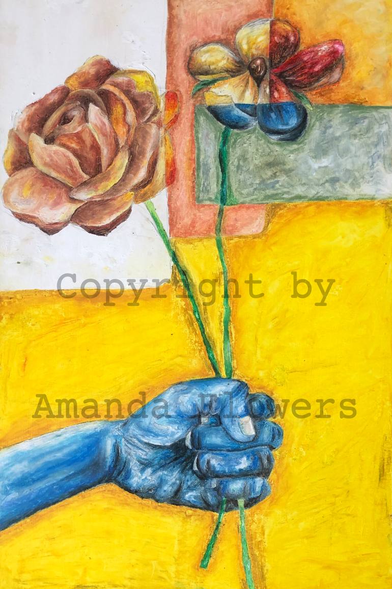 I have been painting blue hands lately and it is more of a protection of embracement rather than a melancholy expression. I want my viewers to feel a softness from what can be seen as the opposite. I chose illustrator board for this piece for its smooth surface. Resin Coating