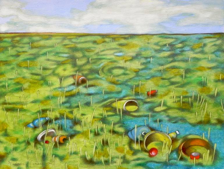 An original piece from the series “Landscape with garbage”, oil on thick paper, 34.7 x 26.2 cm. I’m afraid that I have never seen in my whole life a place that was totally devoid of garbage or waste. Like the majority of people nowadays, I have traveled quite a lot, and in all the places where I've...